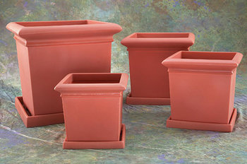 Poly Planters are available in terra cotta and designer colors at no additional cost. Designer color orders must be prepaid and are non returnable. All designer color orders must include appropriate saucers. A minimum 4 week delivery time is required on all designer colored orders. Colors shown in this catalog are for reference only, and all orders for designer colors should be made referencing color chips available from JAZ Products.